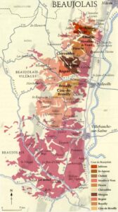 Heerlijk met een van de 10 Crus ( dorpjes) uit de Beaujolais. Een Fleurie bijvoorbeeld gemaakt van de Gamay druif uit het dorp Fleurie. ( zie foto).